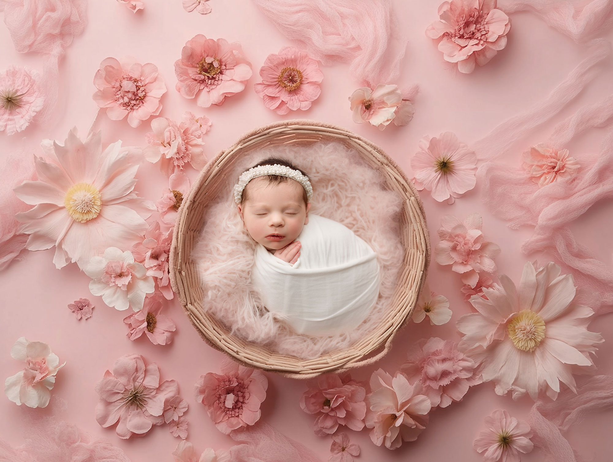 The theme of this newborn photography session was serenity and simplicity with whimsical touch. I’ve used soft colors that complemented baby’s complexion and created some digital backdrops to go well with the setups. The outcome were beautiful, classic and fun photographs of a sweet newborn.